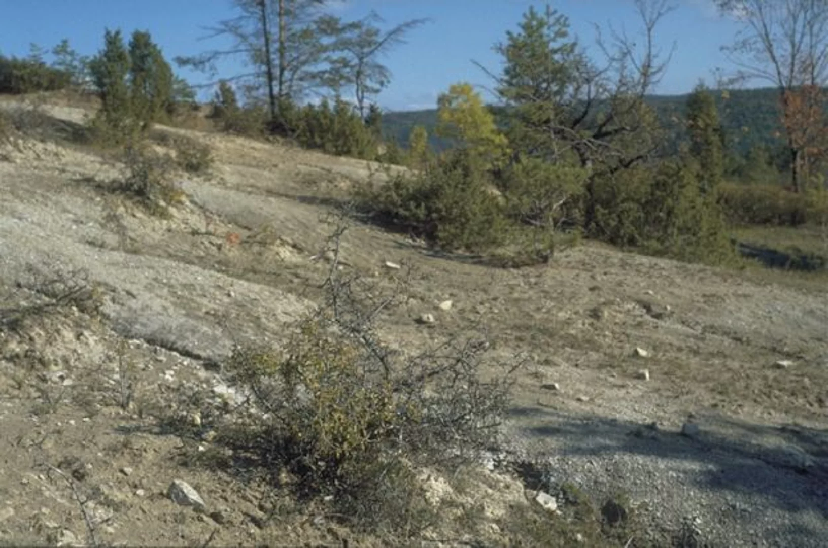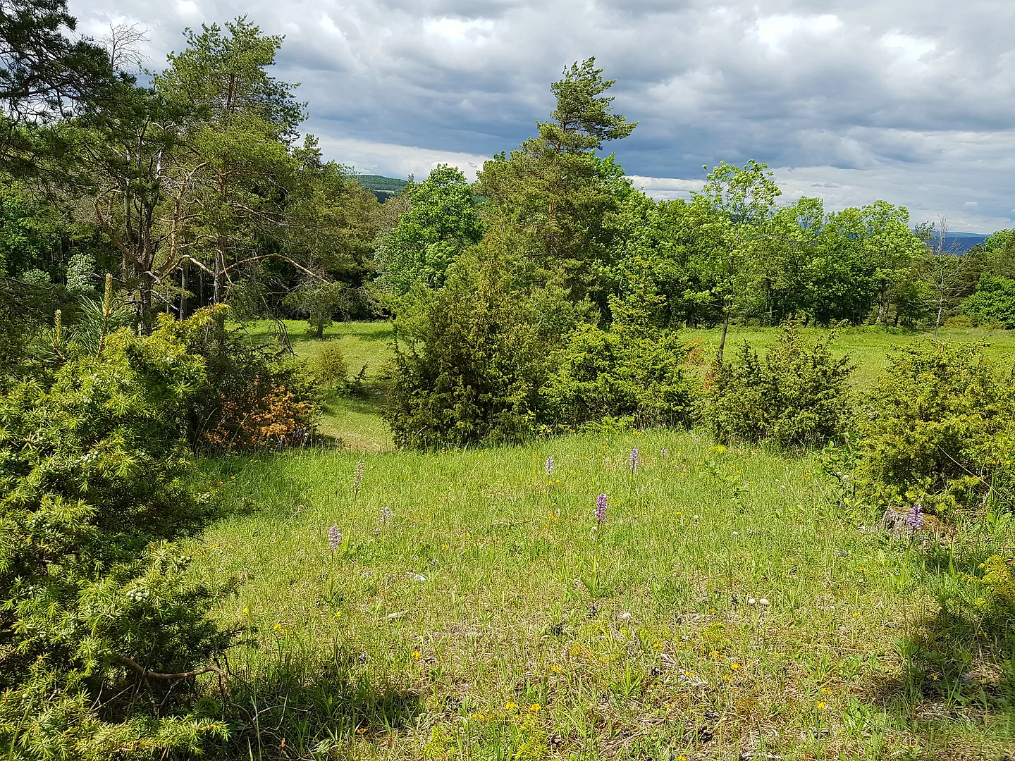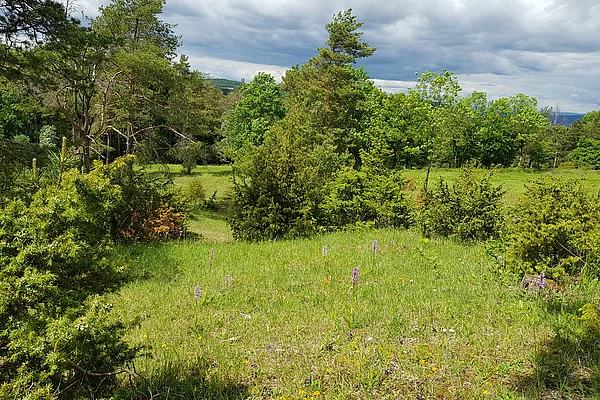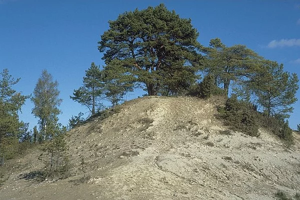 An den Gipfeln des Kalkbergs liegt eine karge, eindrucksvolle Landschaft. Kiefern und Wacholder strukturieren die offenen Kalkflächen.