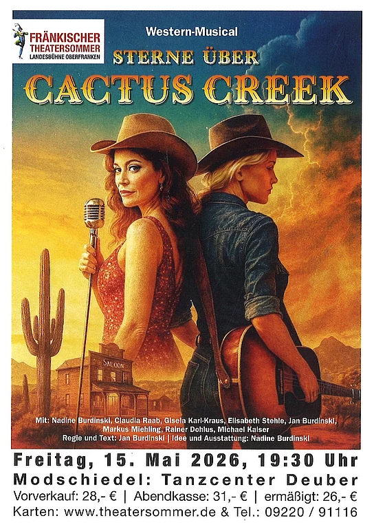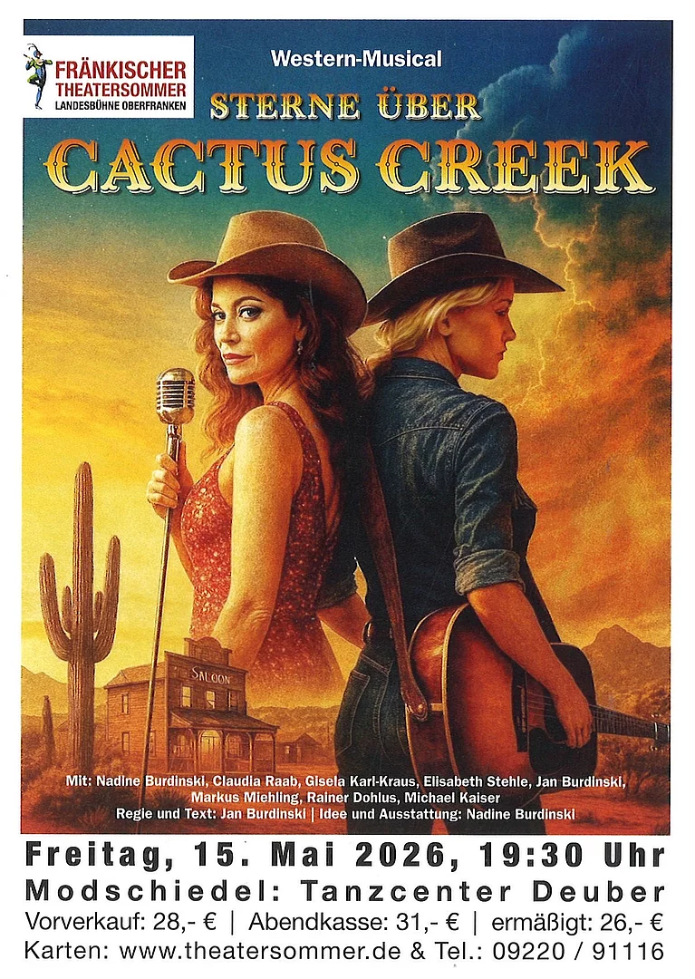 Unterstützt wird er von der Saloonbesitzerin Jolene und ihrer Tochter Billie Jeane, die mehr Feuer im Herzen trägt als der Grill bei einer oberfränkischen Kerwa. Und als der charmante Straßenmusiker Jessy Ray in der Stadt auftaucht, knistert’s nicht nur auf der Bühne. Doch plötzlich steht sie da – der jüngste Stern am Country-Himmel: Ruby Rubio, glamouröse, Grammy-nominierte Diva, die mit ihrem Erscheinen mehr Staub aufwirbelt als ein Prärie-Sturm.
